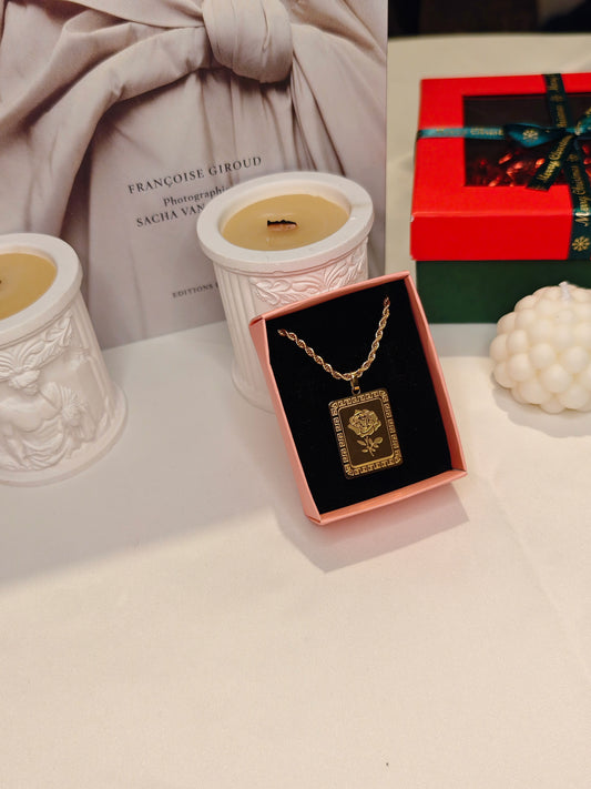 Gül İşlemeli Gold Kolye